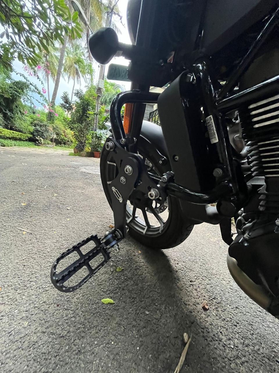 • The Indexable( position changeable) highway foot pegs provide the rider an extension of 3 inches to 13 inches.