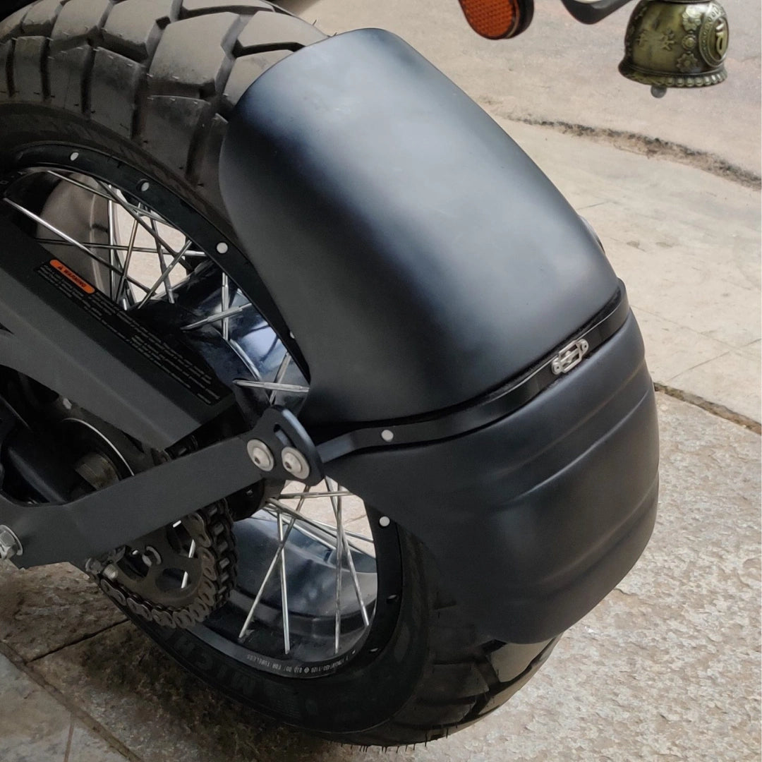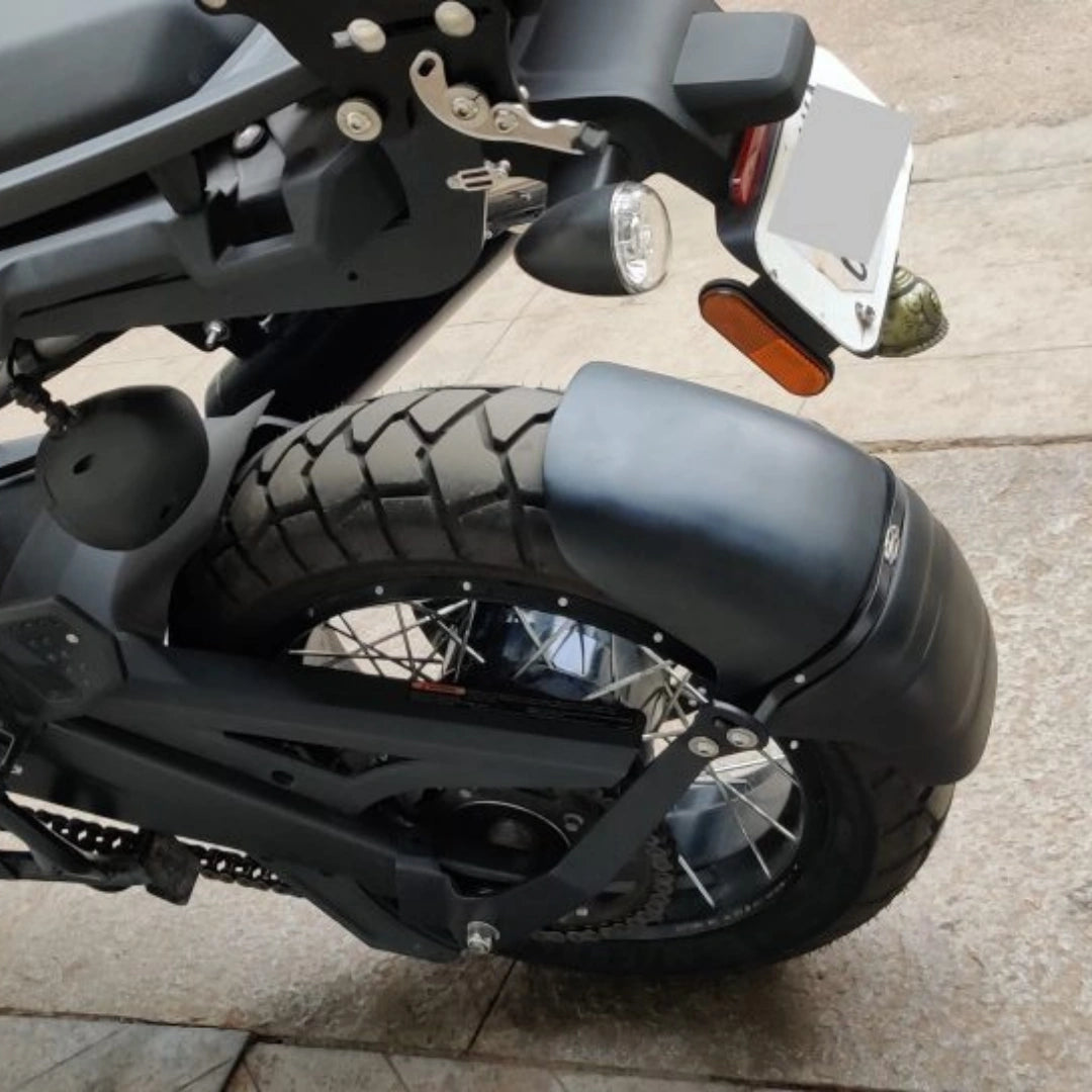 A beautifully crafted mudslinger to perfectly suit the radius and width of Pan America rear wheel. Protects the pillion and bike from the slush which is thrown up by the wheel.